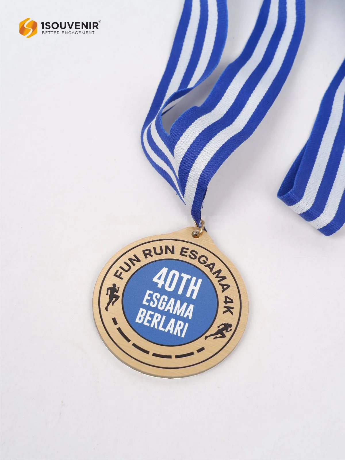 Medali Fun Run Esgama 4K ini diberikan sebagai bentuk apresiasi bagi para juara. Dengan desain yang menarik, perpaduan warna cerah, serta pita biru putih yang elegan, medali ini melambangkan energi, prestasi, dan kebanggaan atas pencapaian yang diraih.