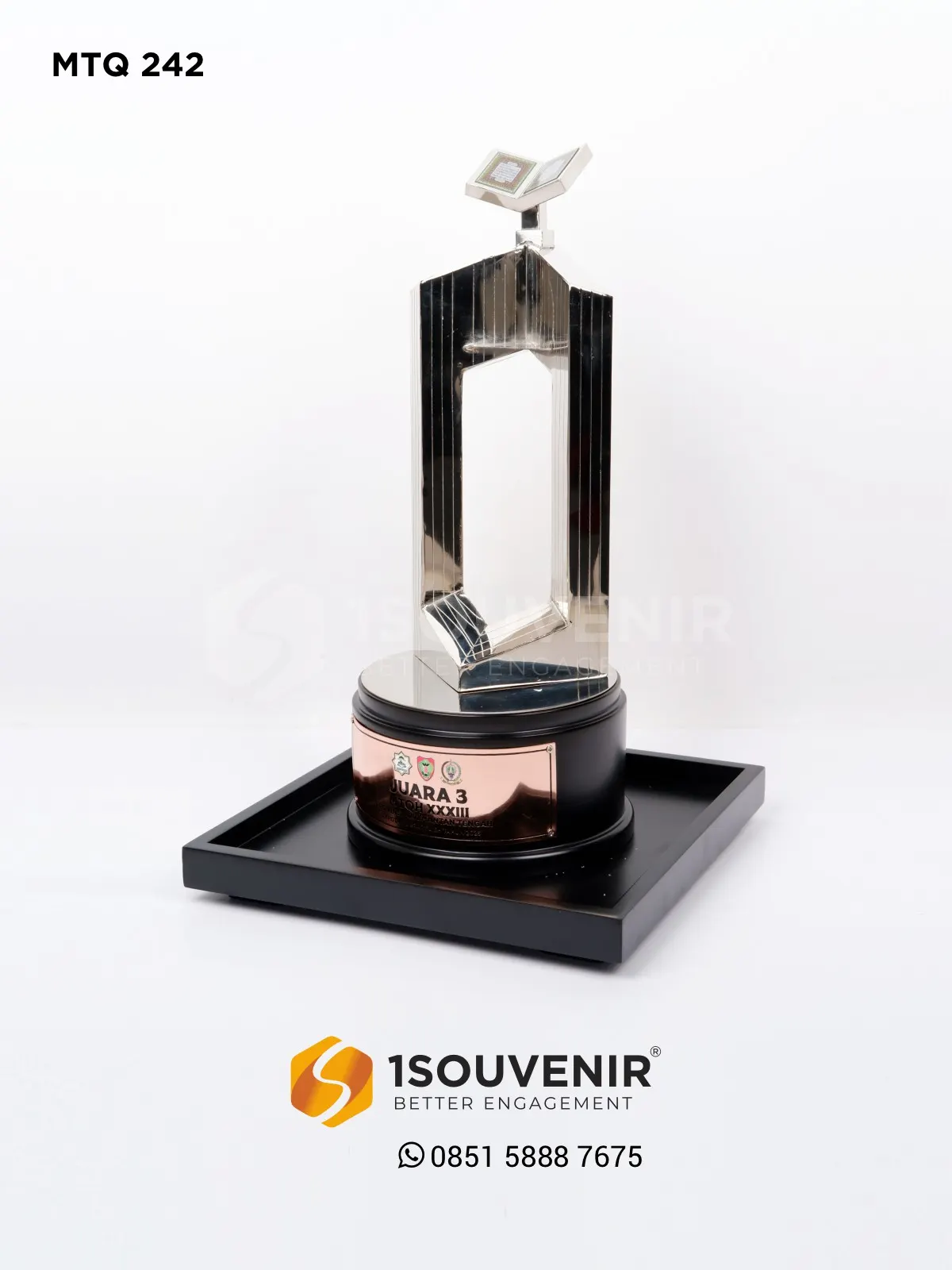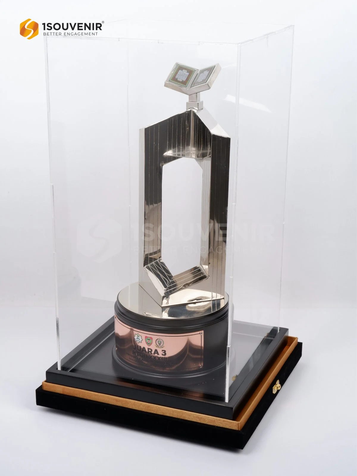 | Teknik | al-quran tranparansi print cat silver tempel body, piala kuningan patri krom nikel, materi kuningan etsa cat dilengkung krom perunggu logo stiker UV dibaut dudukan |