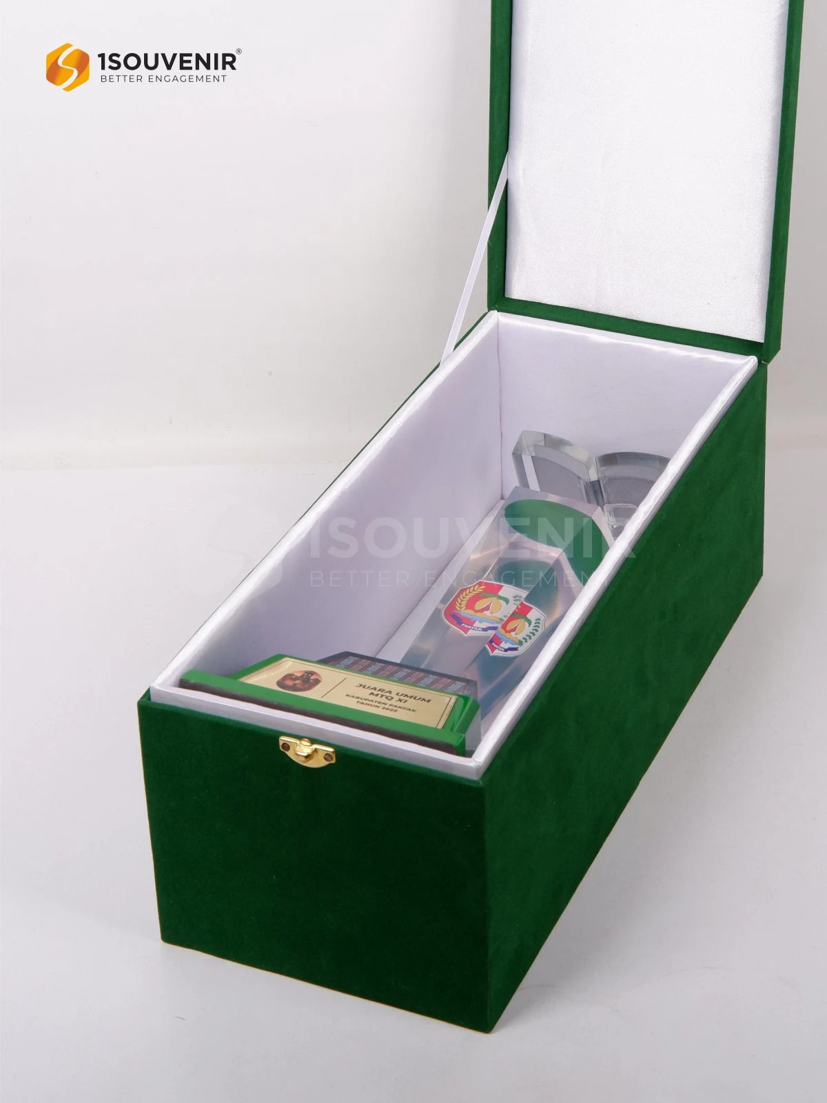 | Box | bludru hijau satin putih |