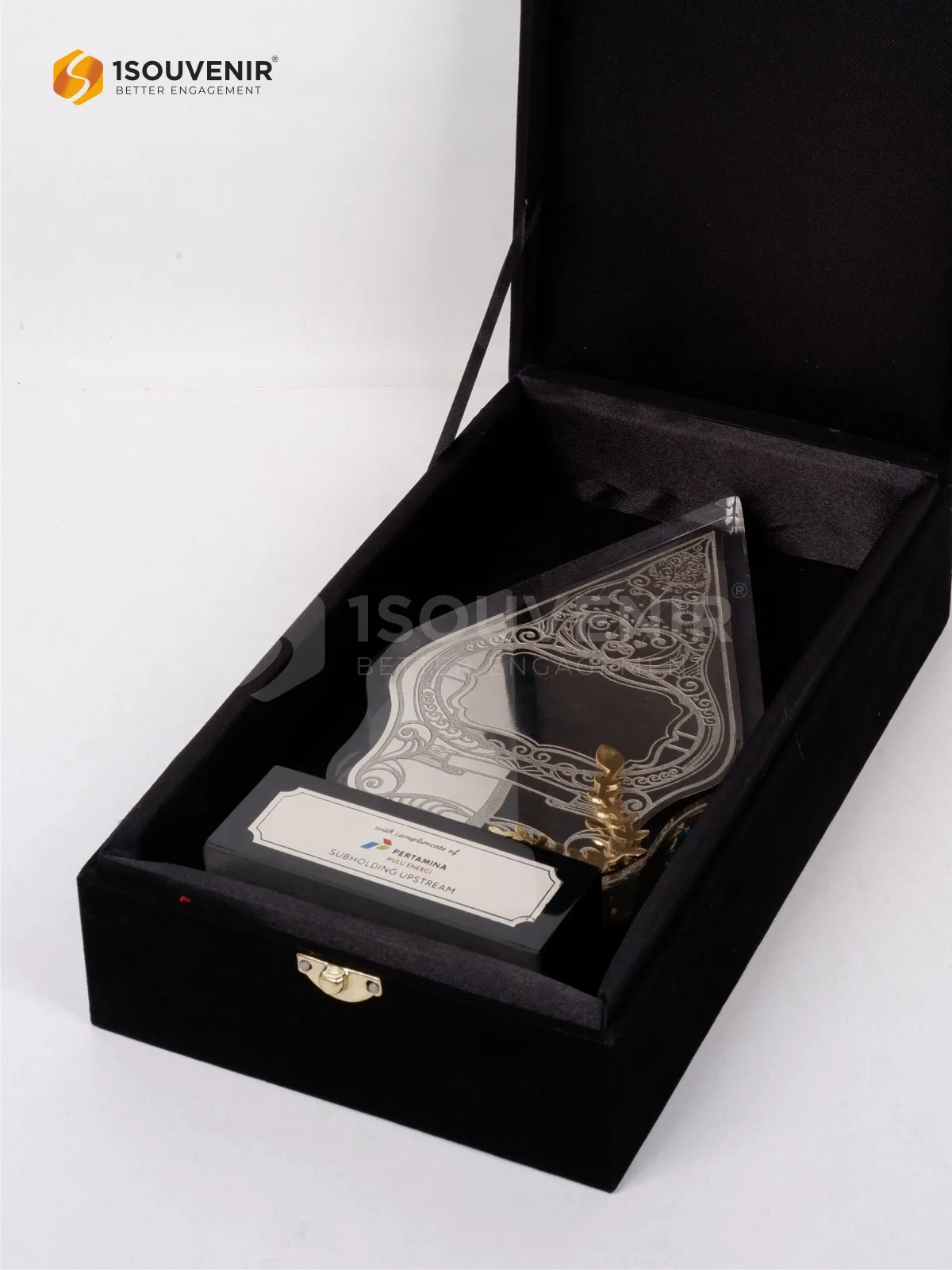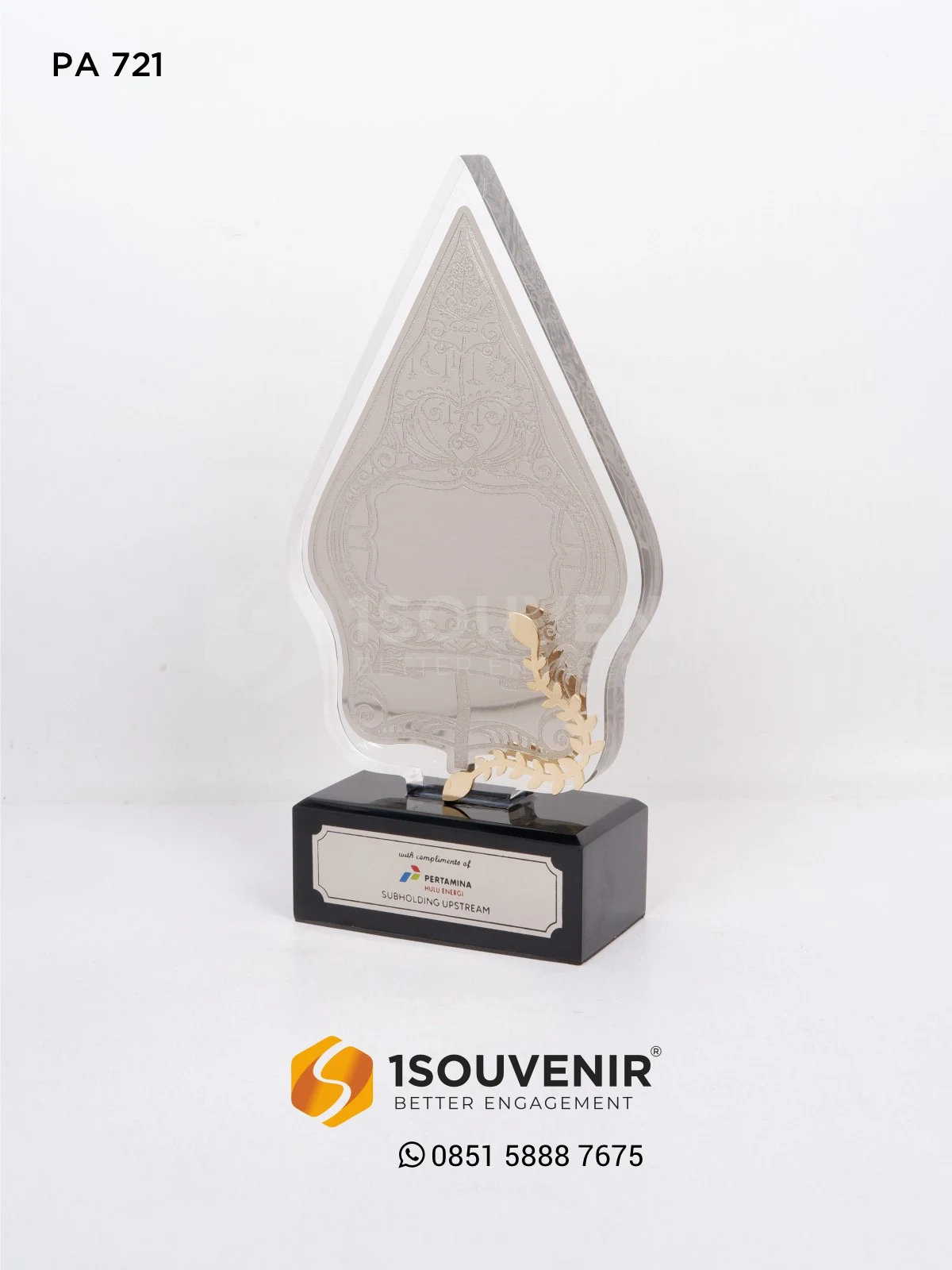 Sebagai wujud apresiasi atas kerja sama dan dedikasi, hadir Plakat PHE Subholding Upstream yang eksklusif. Terbuat dari akrilik berkualitas tinggi dengan desain menyerupai gunungan wayang, plakat ini menjadi simbol perjalanan dan pencapaian yang penuh makna.