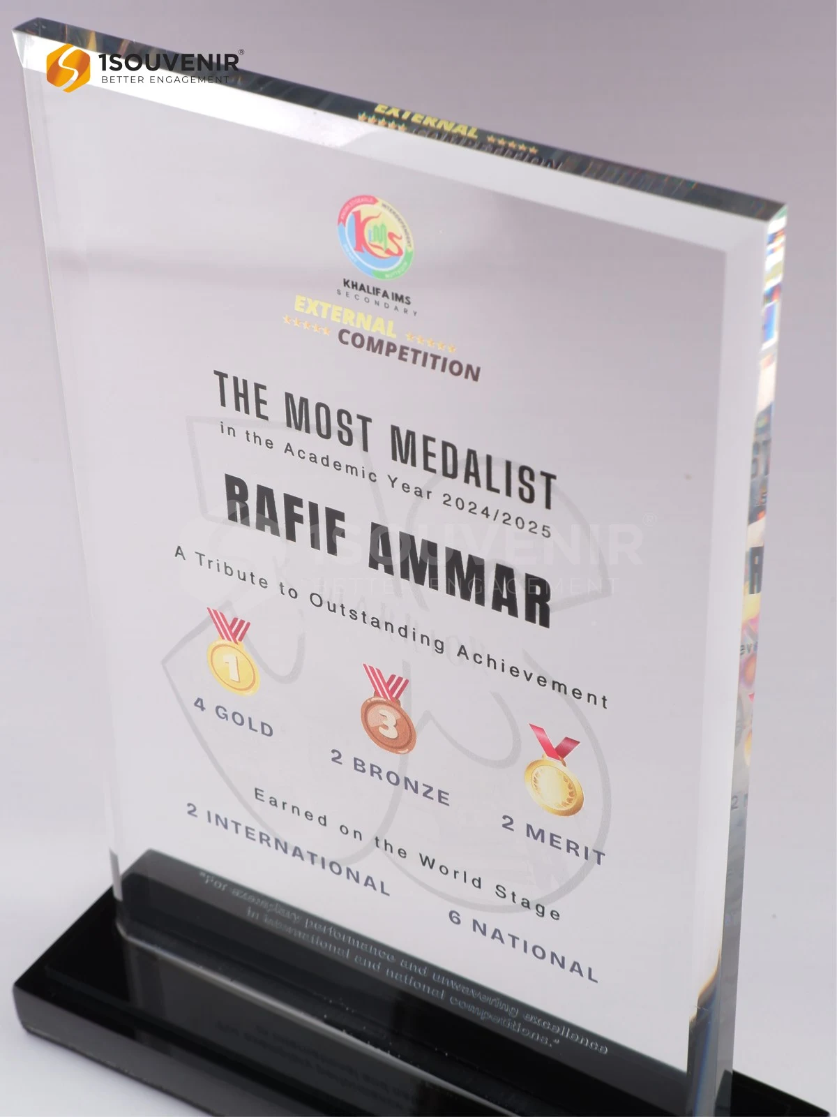 Plakat Akrilik The Most Medalist in The Academic Year sebagai Penghargaan dari Khalifa IMS