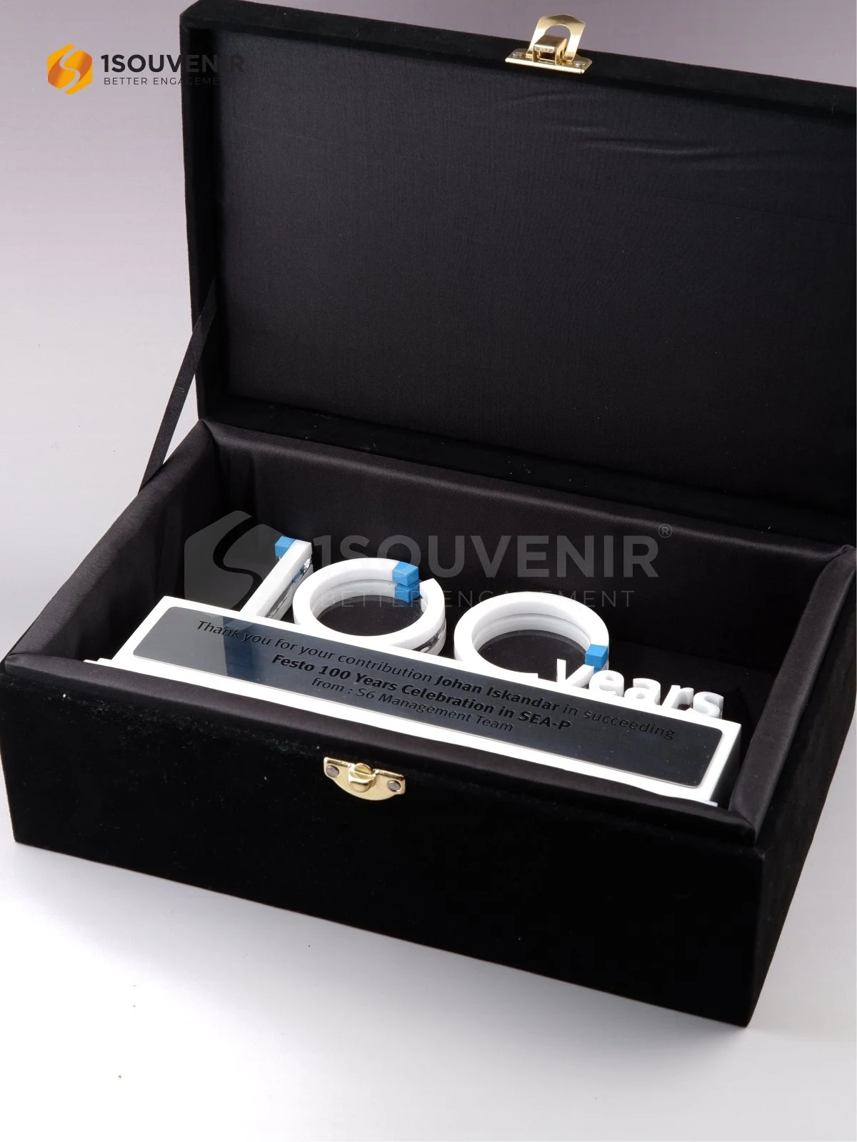 Plakat Festo 100 Years Celebration dibuat sebagai bentuk penghargaan kepada sosok yang memberikan kontribusi berarti, seperti Johan Iskandar. Melalui plakat akrilik ini, setiap pencapaian dan upaya yang telah dicurahkan dirayakan dengan penghormatan mendalam.