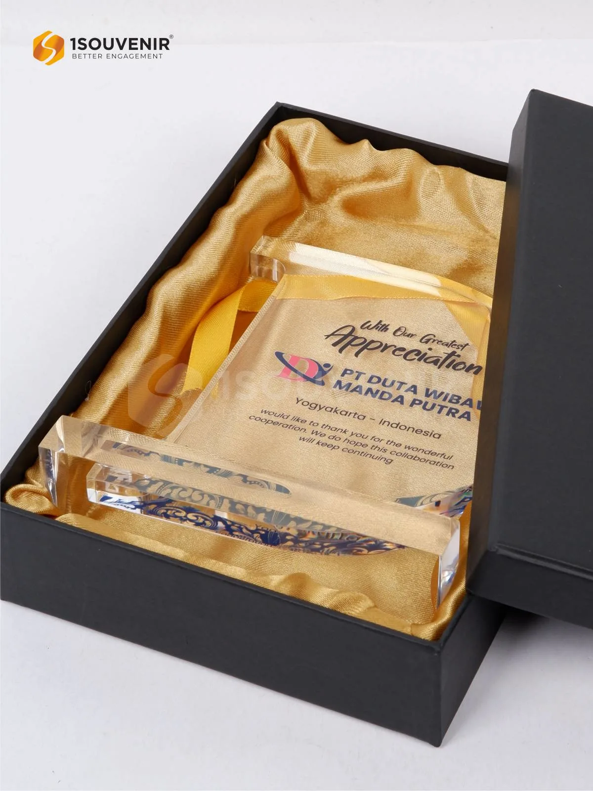 Sebagai media penghargaan, plakat akrilik menawarkan kesan modern, eksklusif, dan awet. Percayakan kebutuhan plakat profesional Anda kepada JogjaPlakat untuk menghadirkan hasil berkualitas.