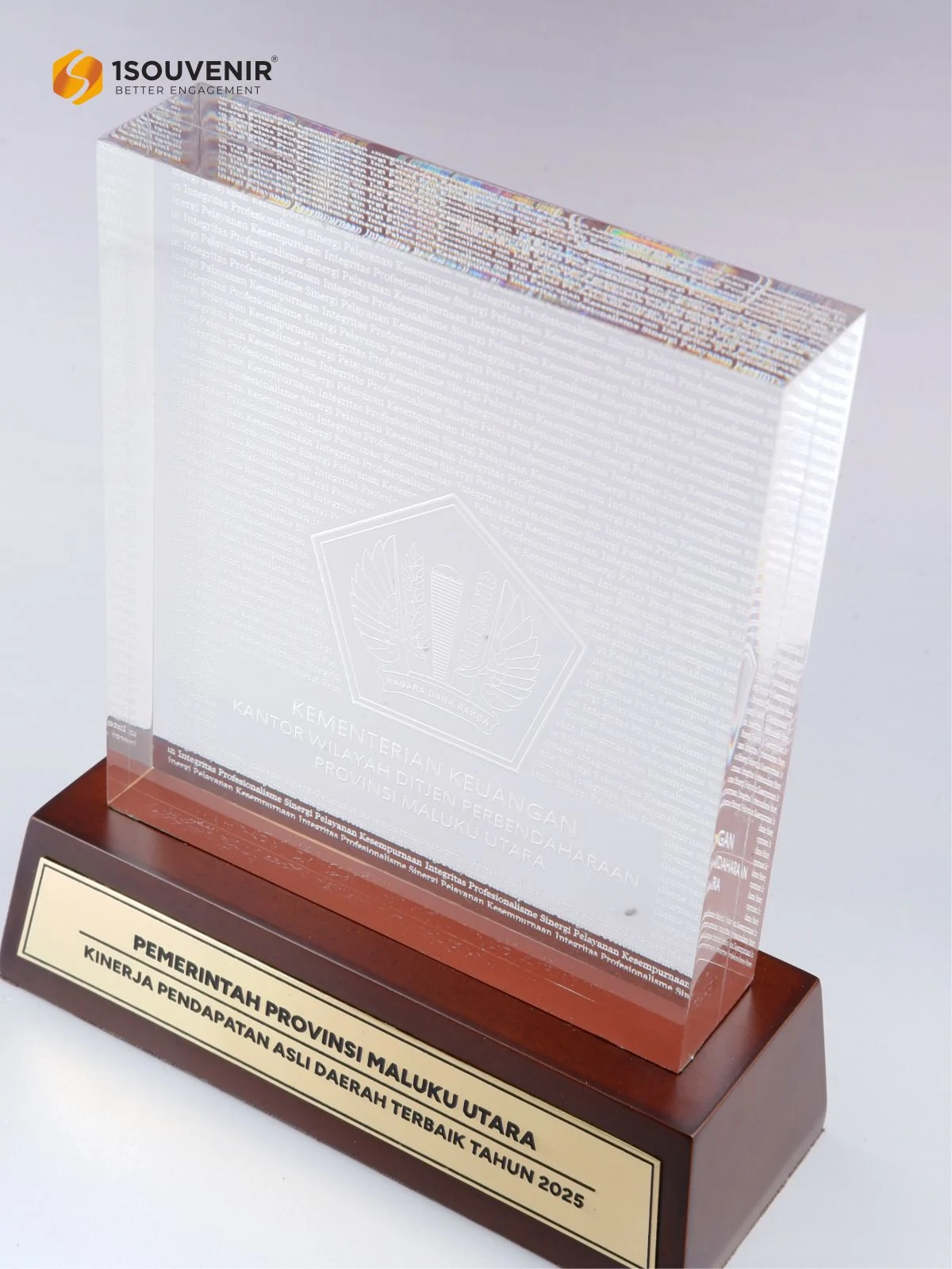 Plakat Kemenkeu Maluku Utara dihadirkan sebagai bentuk penghormatan atas dedikasi, sinergi, dan kontribusi yang telah diwujudkan. Tampilan akrilik dengan desain rapi dan elegan melambangkan integritas institusi sekaligus menjadi penanda atas keberhasilan yang membanggakan.