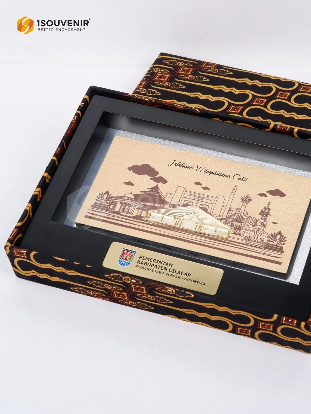 Plakat Pemerintah Kabupaten Cilacap ini dirancang sebagai kenang-kenangan yang menangkap karakter khas daerah—menampilkan ilustrasi landmark Cilacap dalam tampilan artistik. Sebuah bentuk apresiasi yang tidak sekadar menjadi pajangan, tetapi juga menyimpan kisah serta kebanggaan bagi penerimanya.