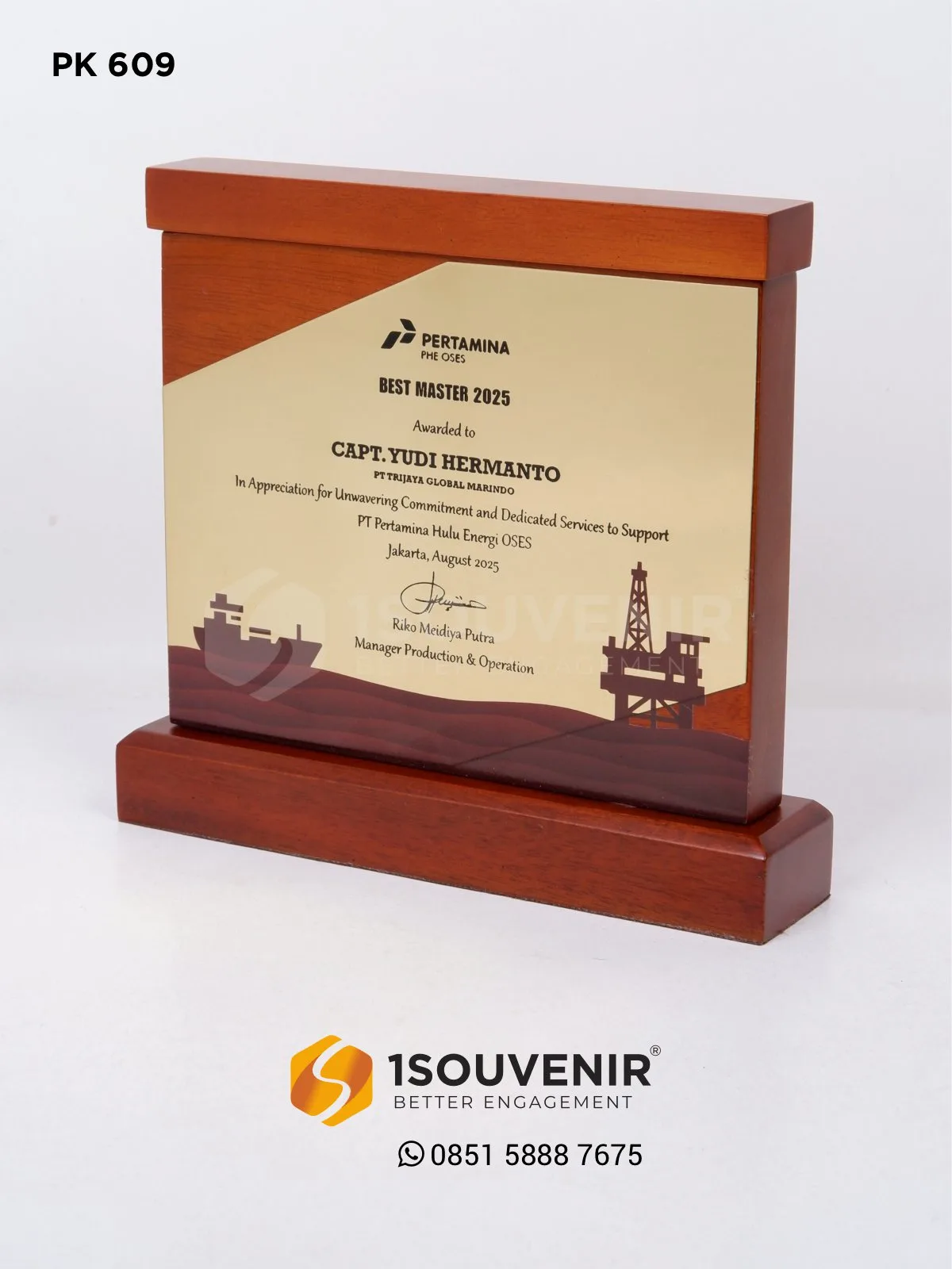 Plakat Kayu Penghargaan Best Master 2025 dari Pertamina PHE OSES untuk PT Trijaya Global Marindo