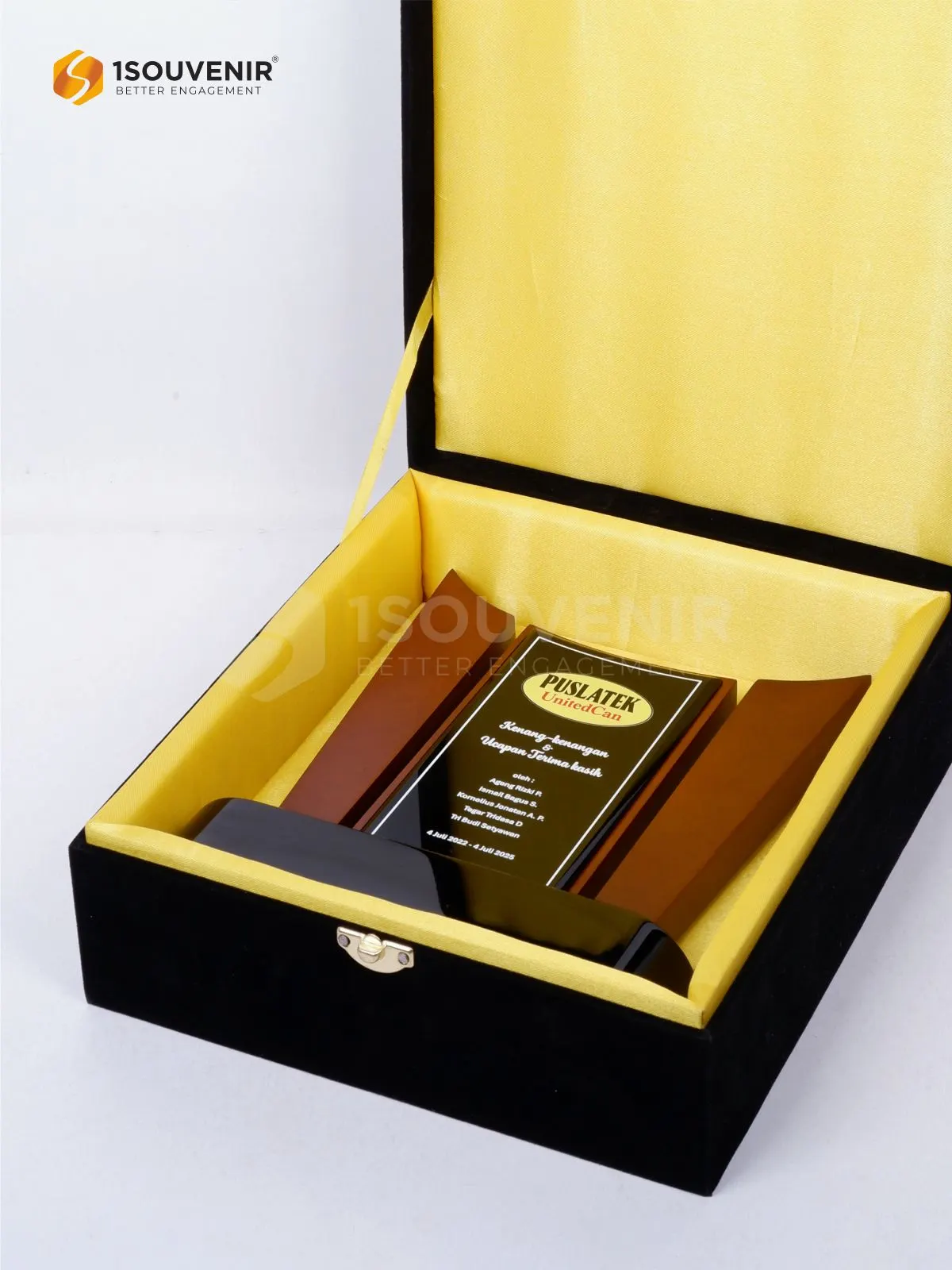 Plakat kayu berdesain elegan ini dihadirkan sebagai simbol penghargaan dan rasa terima kasih dari Puslatek UnitedCan. Dengan tampilan yang kokoh dan berkelas, plakat ini mencerminkan penghormatan mendalam atas kerja keras dan kebersamaan yang telah terjalin.