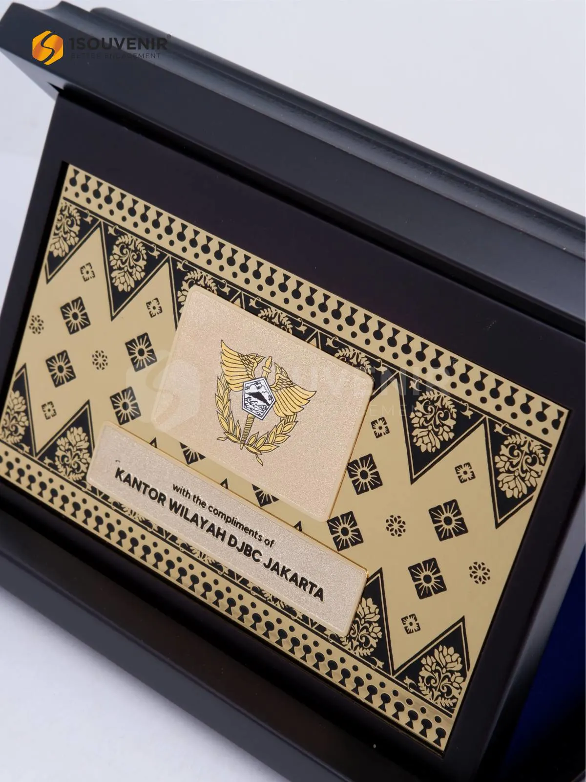 Plakat DJBC Jakarta ini dihadirkan sebagai cendera mata yang merefleksikan nilai hubungan kerja yang telah terjalin. Rancangan plakat kayu ini mencerminkan wibawa institusi sekaligus menjadi bentuk apresiasi atas kolaborasi dan kontribusi yang berarti.