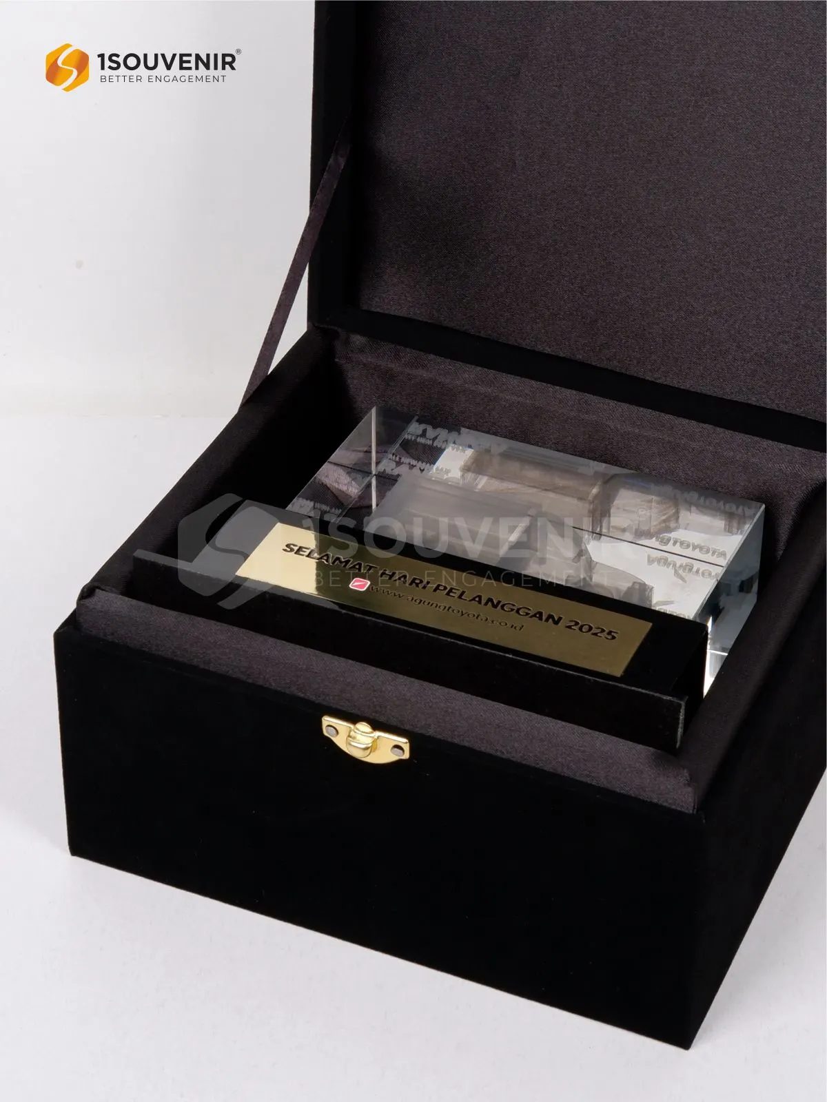 Sebagai penanda momen tersebut, dibuat Plakat Selamat Hari Pelanggan dalam bentuk plakat kristal dengan tampilan elegan. Plakat ini berfungsi sebagai simbol penghargaan dan kenang-kenangan atas hubungan baik yang terjalin bersama para pelanggan.