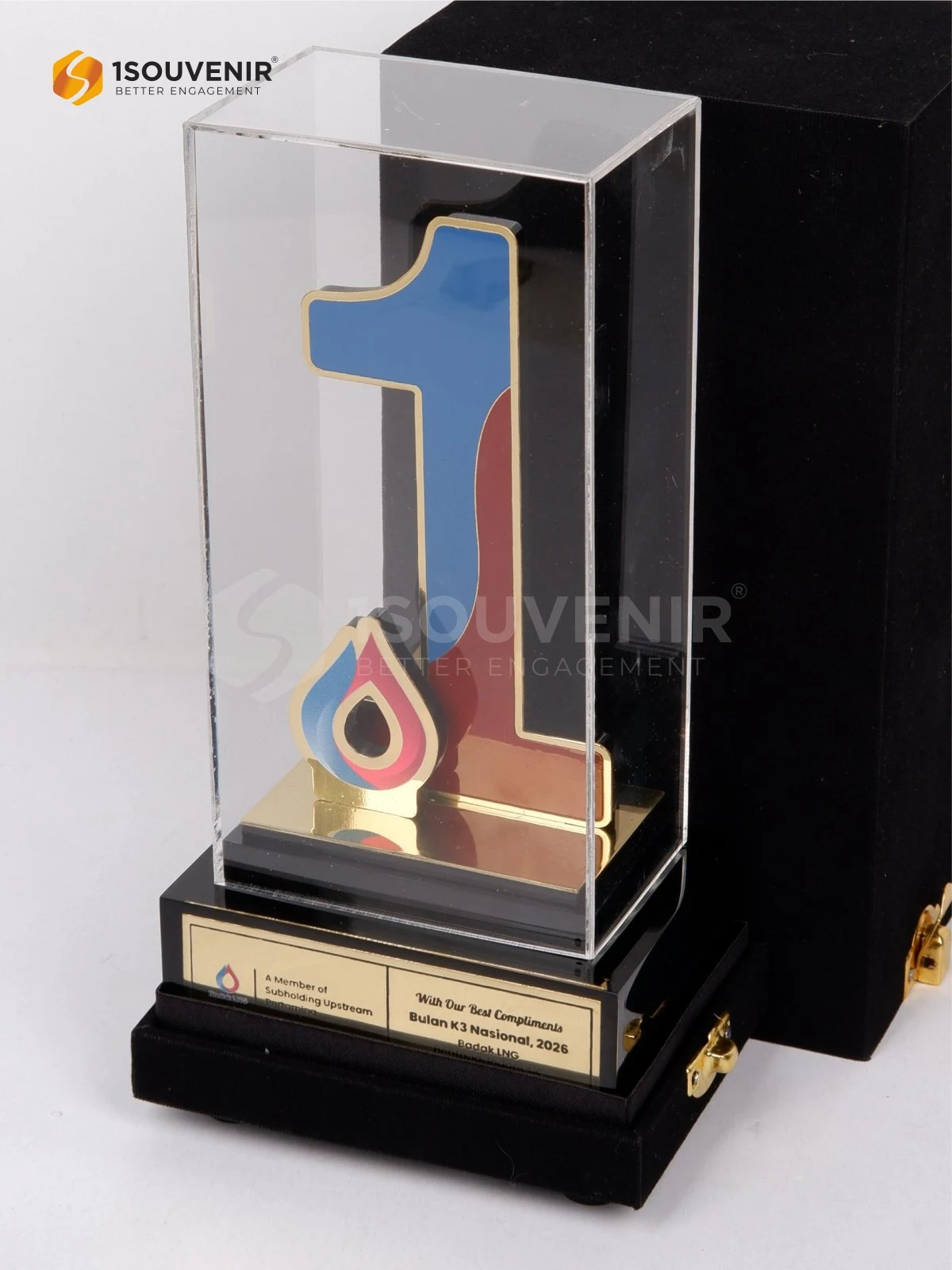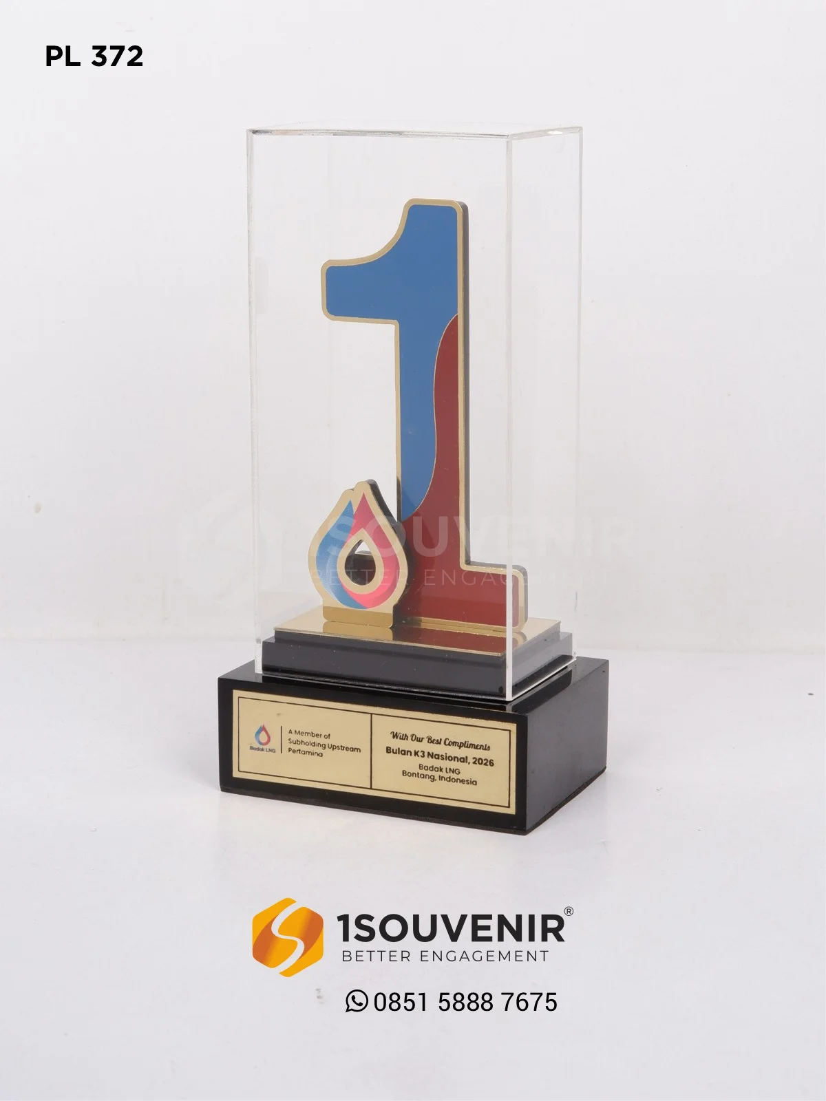 Plakat Bulan K3 Badak LNG hadir dengan desain modern yang memadukan bentuk angka dinamis dan sentuhan elegan, mencerminkan dedikasi serta semangat keselamatan. Tampilan profesionalnya menjadikan plakat ini simbol apresiasi yang kuat dan berkarakter.