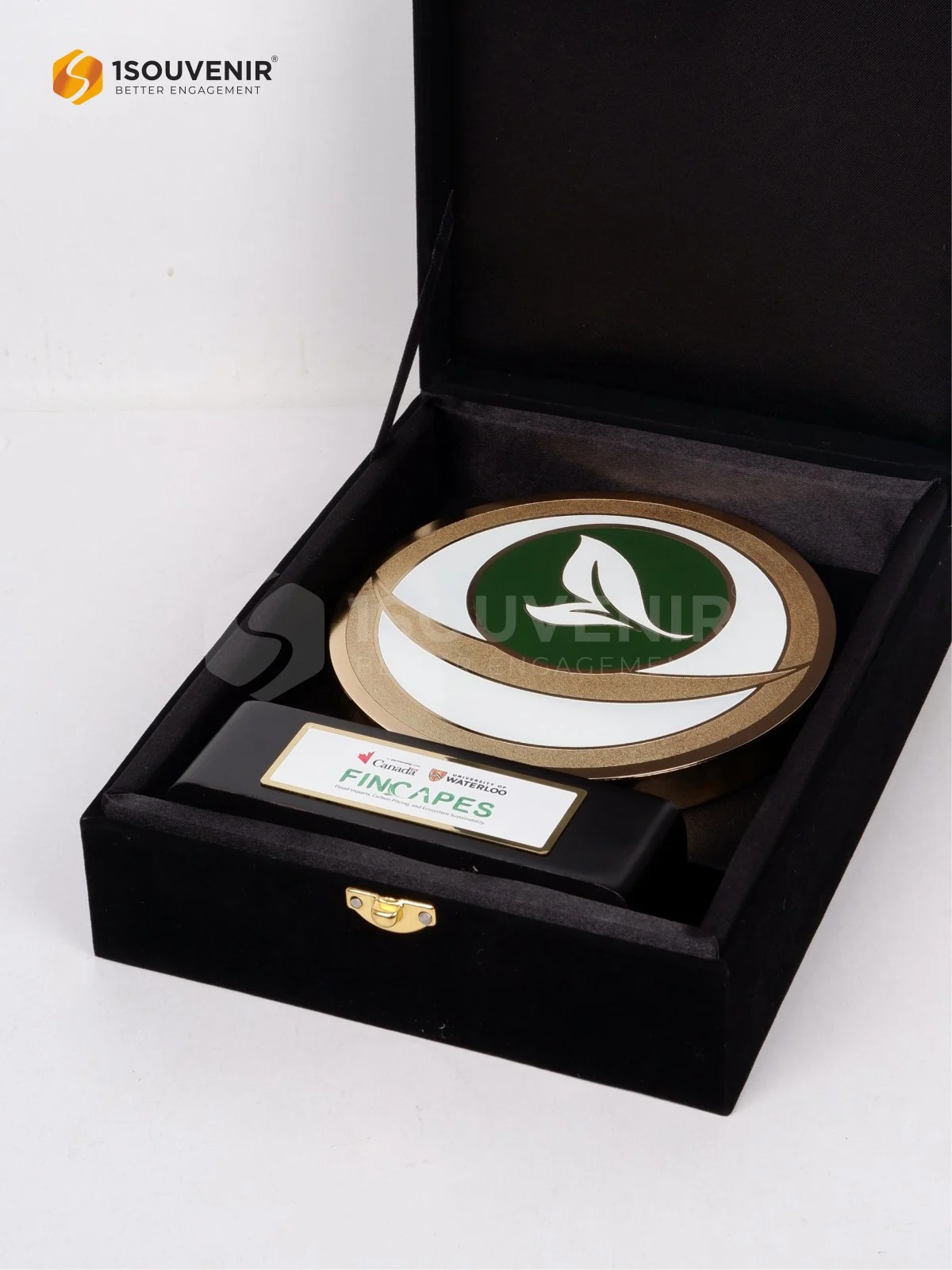 Plakat University of Waterloo ini hadir sebagai simbol apresiasi yang lebih dari sekadar penghargaan, melainkan kenangan berharga yang merekam perjalanan dan kontribusi penerimanya. Desain berbentuk lingkaran dengan aksen emas dan sentuhan warna hijau menggambarkan keseimbangan, pencapaian, serta identitas institusi yang kuat.