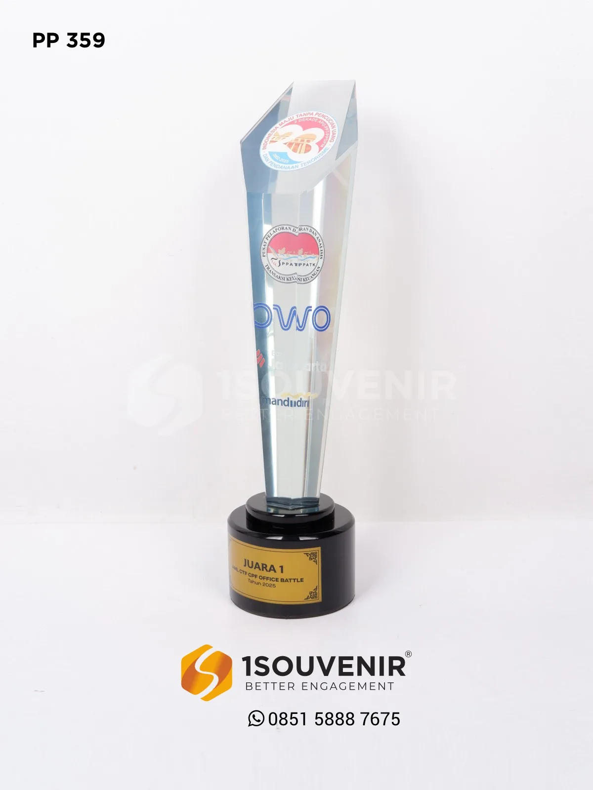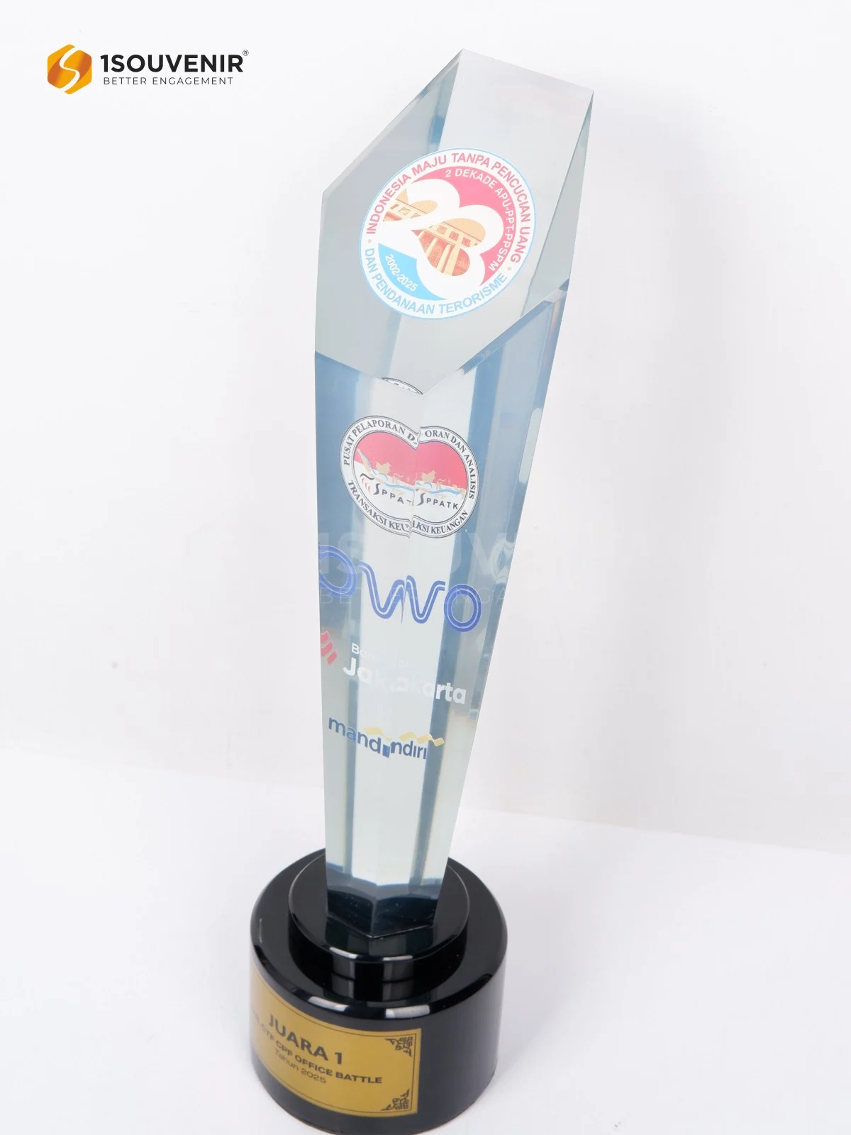 Piala AML CTF CPF Office Battle ini dihadirkan sebagai bentuk apresiasi atas pencapaian luar biasa para peserta. Desainnya yang modern dan elegan menjadikan piala ini tidak hanya sebagai simbol kemenangan, tetapi juga kenang-kenangan berharga yang merepresentasikan kerja keras dan semangat juang.