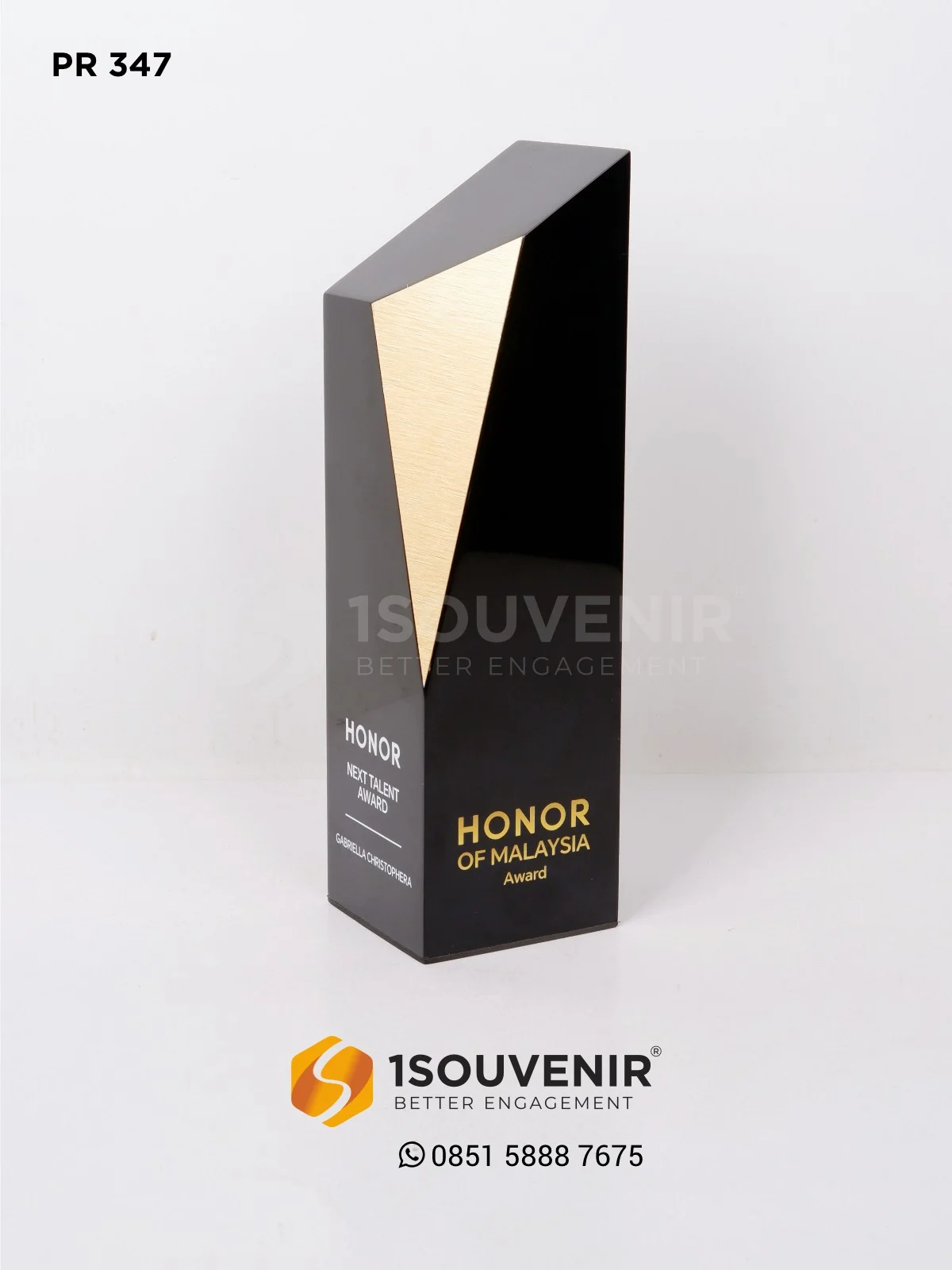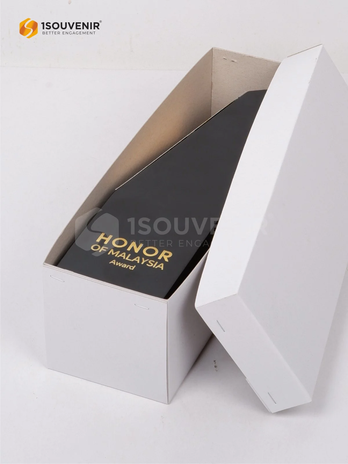 Plakat Honor of Malaysia Award dihadirkan sebagai wujud apresiasi yang elegan dan prestisius. Mengusung desain modern dengan kombinasi warna hitam dan emas, plakat ini memberikan kesan eksklusif sekaligus mencerminkan nilai tinggi dari setiap pencapaian yang diraih.