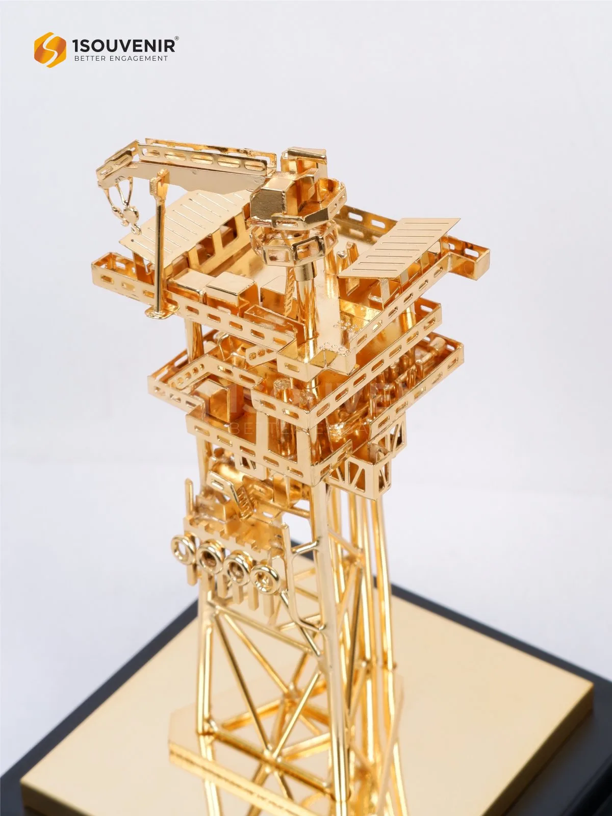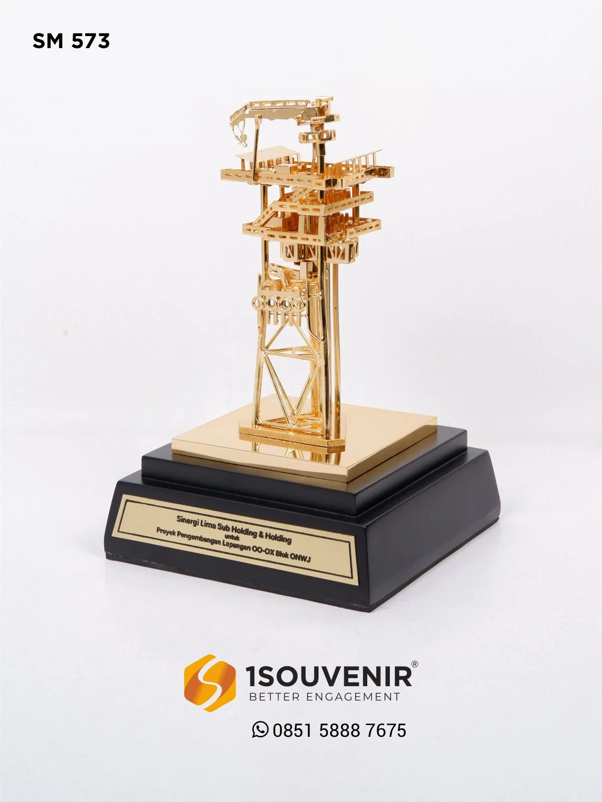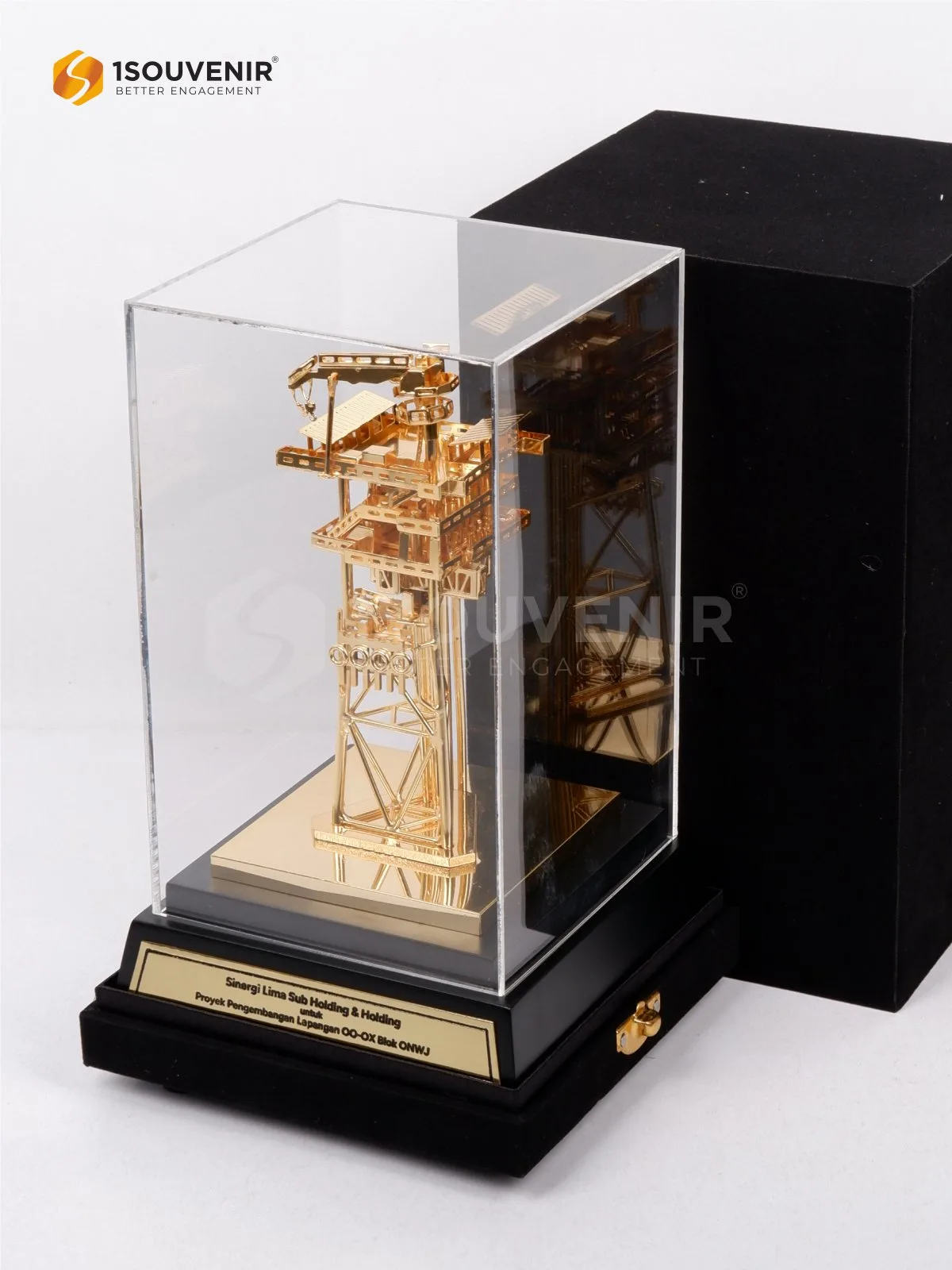Miniatur Proyek Pengembangan Lapangan ini dihadirkan sebagai cendera mata eksklusif. Dengan detail presisi berlapis emas, miniatur ini mencerminkan pencapaian monumental sekaligus simbol kebersamaan dalam mewujudkan visi besar energi bangsa.