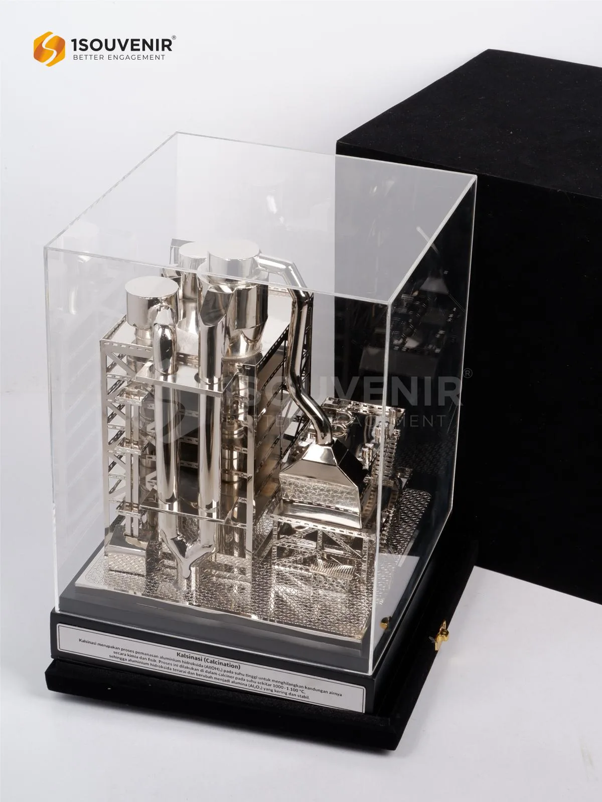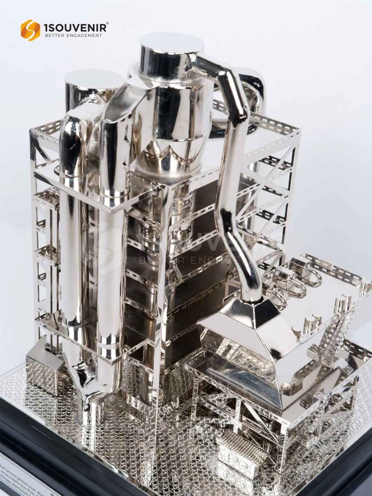 Miniatur tungku peleburan kalsinasi ini dihadirkan sebagai kenang-kenangan yang merefleksikan proses industri dengan detail yang akurat. Struktur kompleks, pipa, dan elemen fasilitas dirancang menyerupai aslinya, menjadikannya simbol penghargaan yang unik dan penuh makna.