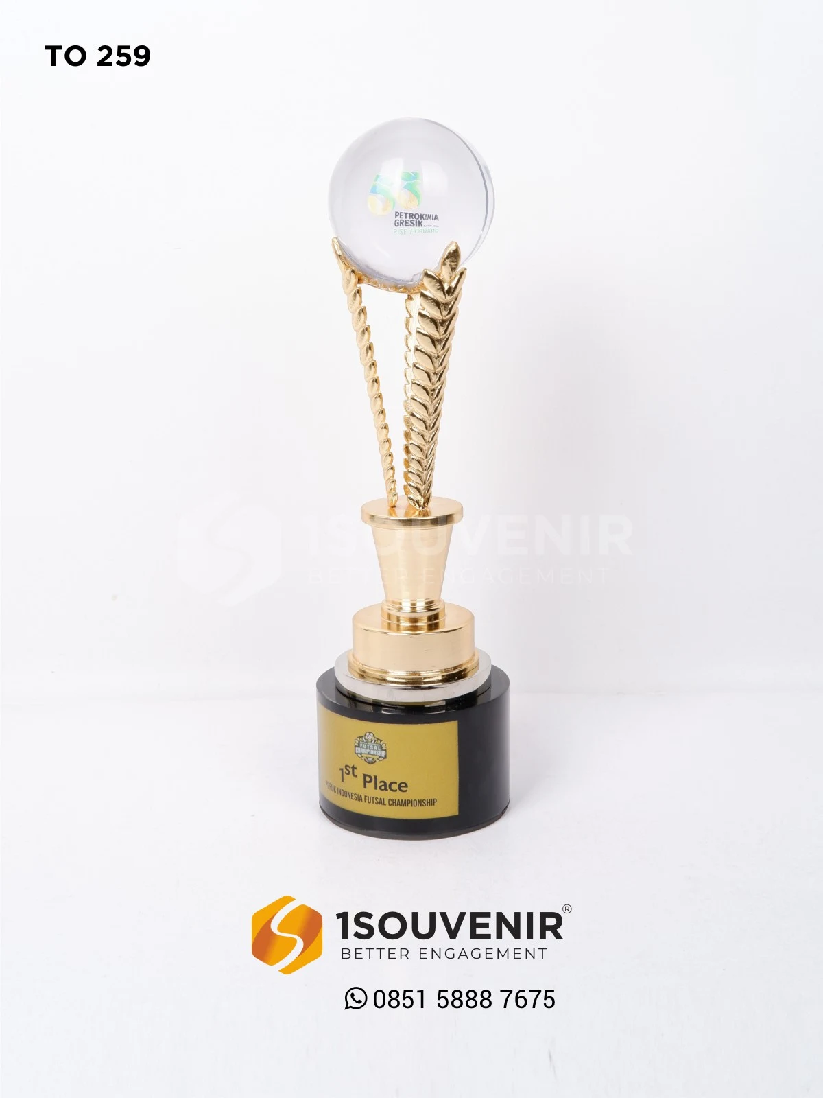 Sebagai lambang kemenangan, Piala Pupuk Indonesia Futsal Championship tampil menawan dengan desain modern berlapis emas dan bola kristal di puncaknya. Piala olahraga ini melambangkan kejernihan semangat, ketangguhan, serta kejayaan prestasi di dunia futsal.